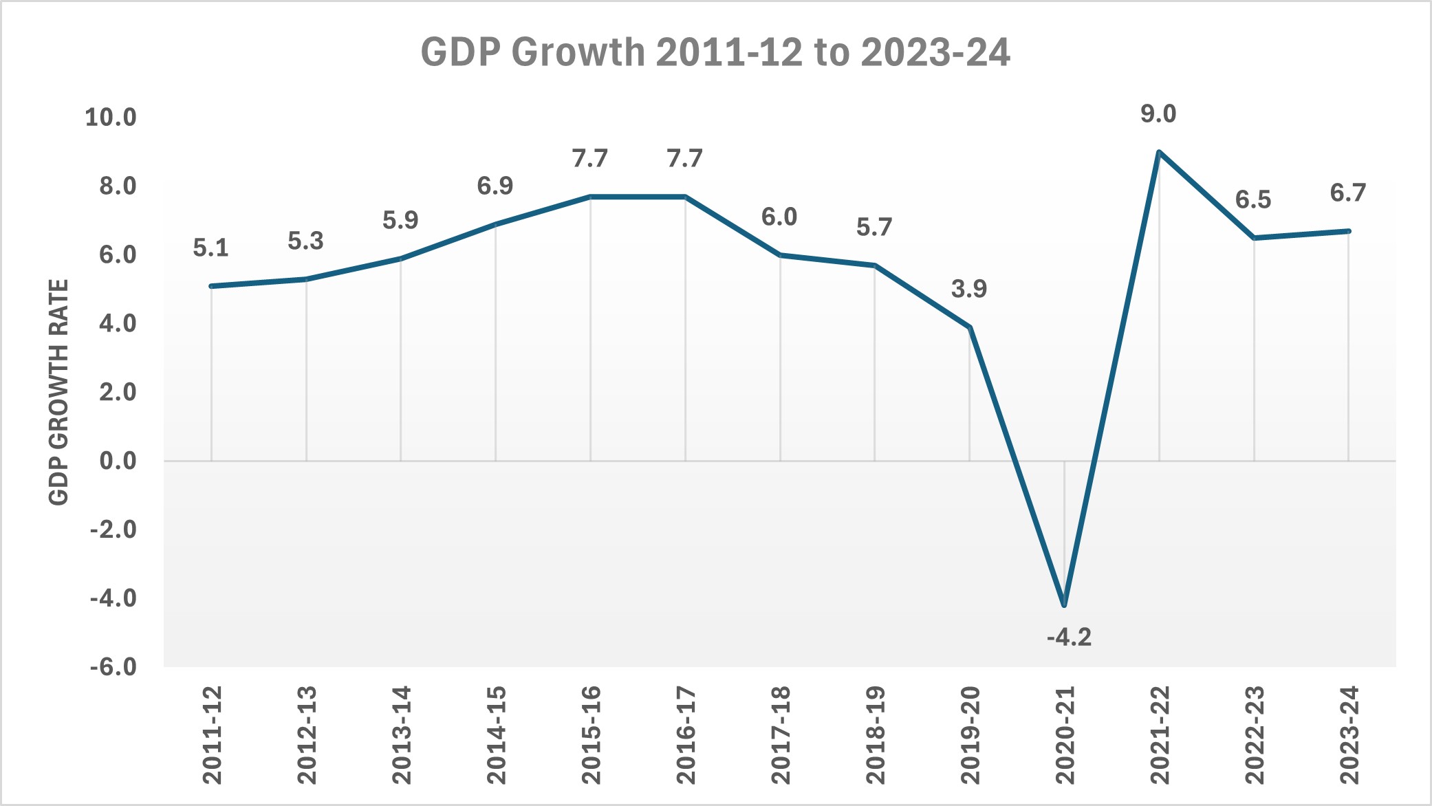 - Since 2014, the growth rate has not increased, despite the fact that the Indian economy has grown to become the fifth largest.